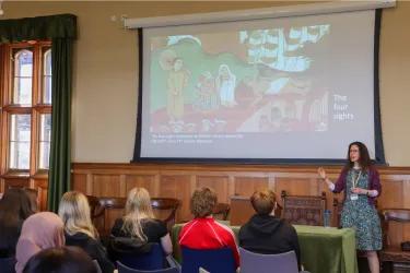 Theology and Religious Studies Discovery Day 2025 Dr Felicity Loughlin inviting attendees to our 2025 Discovery Day on 10 June. View media transcript Hello, I'm Dr Felicity Loughlin, and I'm a lecturer here in the School of Divinity at the University of Edinburgh. I'm here today to tell you about our annual Discovery Day for RMPS and RS teachers and their pupils and that will take place this year on the 10th of June. This is a really brilliant opportunity to discuss the discipline of Theology and Religious Studies in all its rich diversity. It's a chance to explore the wide range of approaches and topics in the study of religion. It's also a chance to get a real sense of what it's like to be a student of Theology and Religious Studies at University. And it's an opportunity to engage with and listen to academics and students, share their reflections on why it really matters to study religion today. You'll have a chance to take part in interactive taster lectures. Last year, we had subjects on Buddhism, on the history of Witchcraft in Scotland, and major debates in Science and Religion. You'll also have the opportunity to see some of the real treasures in our New College Library special collections, and we'll be able to welcome you to our beautiful building. So come along, join us. We can't wait to discuss these topics with you. We were thrilled to have the opportunity to welcome schools from across Scotland to our Theology and Religious Studies Discovery Day which was held at New College on Tuesday 10 June 2025. Our Discovery Day is a great way to introduce pupils to the wide and exciting range of topics and approaches available within Theology and Religious Studies. The day also allows us to discuss the value of studying these subjects and to showcase what it’s like to study them at university. Pupils were welcomed in our beautiful building by the Head of School before participating in interactive taster lectures. Pupils also heard from current staff, students and a guest alumnus, who talked about their experiences at New College. Subscribe to our mailing list to receive exclusive RMPS teaching resources and updates. Subscribe to our mailing list Programme 10 June 2025, School of Divinity, University of Edinburgh 9:30–9:40am Arrival: Check-in at the 'black and white' corridor then proceed into the Assembly Hall9:40–9:45am Video viewing: Students and staff tell you what it's like to study at the School of Divinity9:45–10am Welcome from Professor Jeremy Carrette, Head of School 10:10–10:40am Session 1: Mini-lecturesProf Naomi Appleton | Martin Hall | The Buddha's Life StoryDr Mike Fuller | Elizabeth Templeton Lecture Theatre | Genetic Modification: Some Ethical and Theological Perspectives 10:40–11:10amProf Rachel Muers | Martin Hall | Theology against Hitler – Dietrich BonhoefferDr Suzanna Millar | Elizabeth Templeton Lecture Theatre | Introduction to Biblical Hebrew 11:10–11:30am Break in various locations (teas, coffees, juice, biscuits) 11:30am–12:30pm Session 2: Assembly Hall11:30-12pm Panel discussion between students and staff on the topic: ‘Why study Theology and Religious Studies?’ including Dr Felicity Loughlin and Rev Dr Matt Baines 12-12:30pm Talk by New College alumnus, Tamsyn Radmall. Scotland Lead at Home for Good (UK): Working to find a home for every child that needs one through fostering, adoption and supportive lodging. 12:30–1:30pm Lunch in various locationsDuring the lunch break there will be a chance to visit the New College Library. First come, first served opportunity, teachers required to register in advance. 1:30–2:15pm Session 3: Assembly HallHumanity Reloaded: AI and the Future of Religion | Dr Shoaib Malik2:15pm Finish, depart Jun 10 2025 09.30 - 14.15 Theology and Religious Studies Discovery Day 2025 Our Theology and Religious Studies Discovery Day was held at New College on Tuesday 10 June 2025. New College, Mound Pl, Edinburgh EH1 2LX
